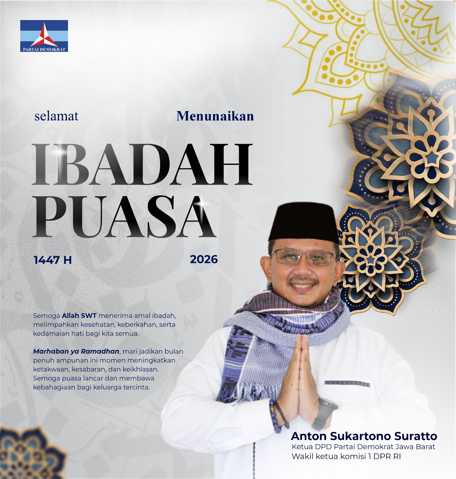 Ketua DPD Partai Demokrat Jawa Barat, Wakil Ketua Komisi 1 DPR – RI , Anton Sukartono Suratto Mengucapkan Selamat Menunaikan Ibadah Puasa Ramadhan 1447 H/ 2026 M.