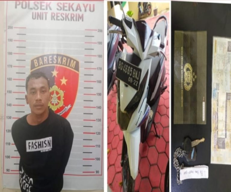 Sepeda motor yang dicuri adalah 1 unit sepeda motor Honda beat warna putih nomor polisi BG 4665 BAJ, yang saat itu diparkir didepan toko korban dengan kunci kontak masih tergantung pada sepeda motor tersebut, tiba-tiba datang tersangka Supikal langsung menghidupkan sepeda motor tersebut langsung kabur, mengetahui hal tersebut korban berteriak maling dan kebetulan saat itu ada anggota kami yang sedang patroli lewat ditempat kejadian, sehingga bersama-sama masyarakat langsung mengejar tersangka dan Alhamdulillah tersangka berhasil ditangkap. Jelasnya.